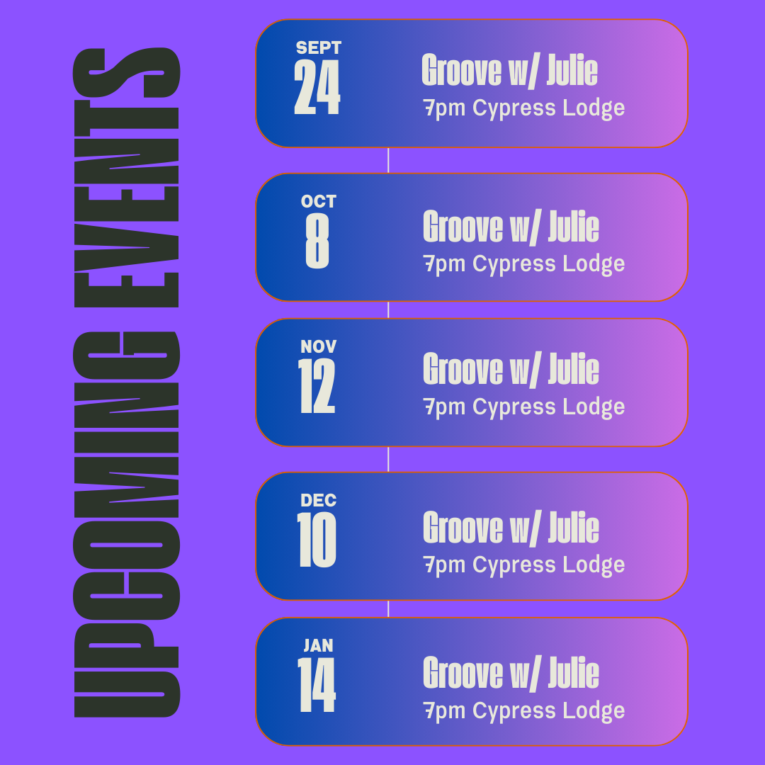 Groovin’ at the Ranch is about uniting in easy-to-follow moves while letting you dance them in your own unique way. With great styles of music and a welcoming vibe, everyone can join in on the fun.